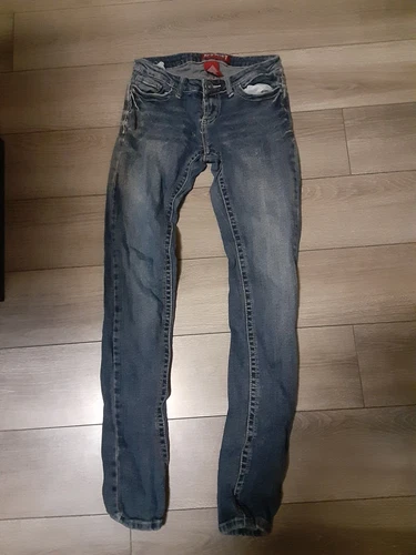 WOMENS RED RIVET SIZE 3 WAIST 29 DECORATED BACK POCKETS BLUE DENIM JEANS #S90