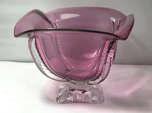 Robinson Scott Art Glass Footed Bowl Vase 5" Signed 1999 Dated Pink Glass Decor
