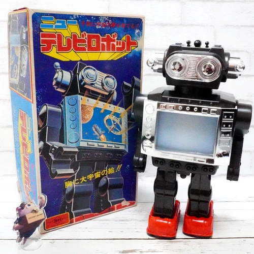 Vintage Horikawa New Television Space Robot Tin Toy Battery Operated Black Japan