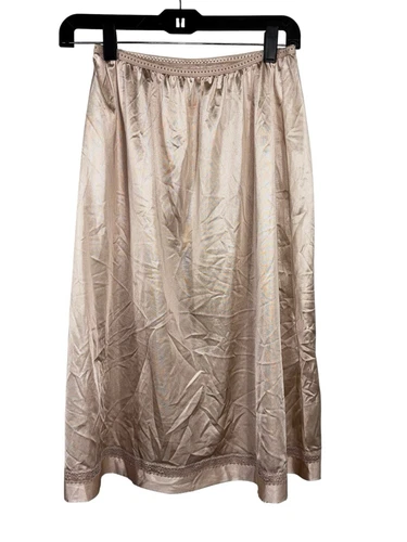 VTG 1960'S PINEHURST LINGERIE BEIGE W/ LACE INSET & TRIM HALF SLIP USA SZ M