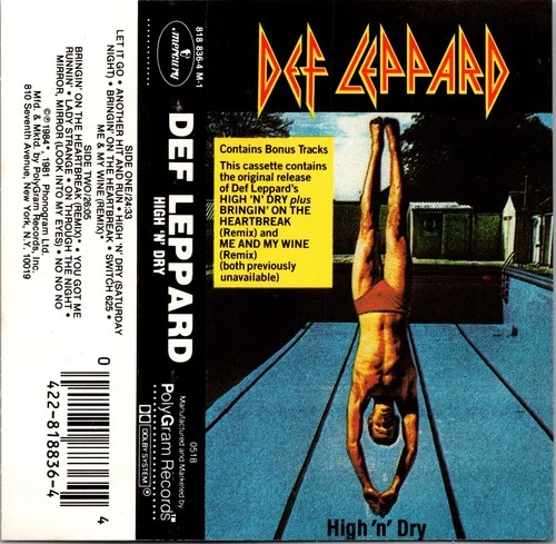 Def Leppard High 'N' Dry (Rock Music Audio Cassette Tape)