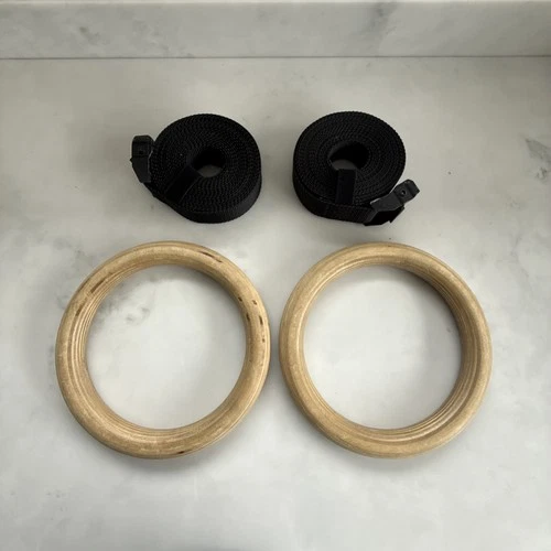 Rogue Gymnastic Wood Rings and 16ft Straps Set 1.25" Used