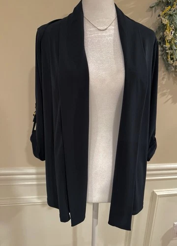 Ellen Tracy Navy Top Women’s Size Small Roll Tab Sleeve Classy Casual