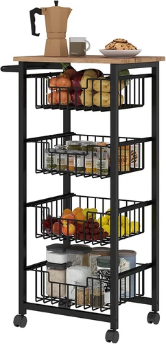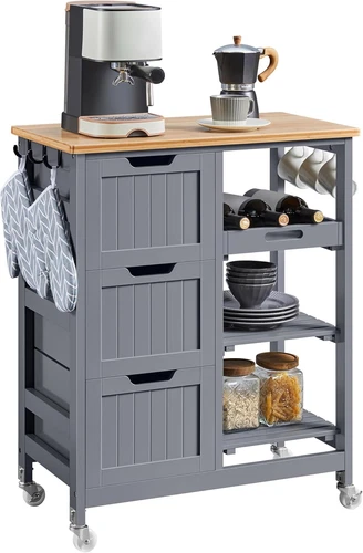 Kitchen Storage Trolley on Wheels with Bamboo Worktop, Rolling Kitchen Island Ca