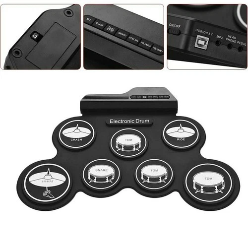 C-Portable Electronic Drum Set 7 Pads 5 Tunings USB Roll Up Drum