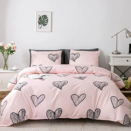 Bedding 135x200 Heart Pattern Girls Pink Microfiber Duvet Cover with