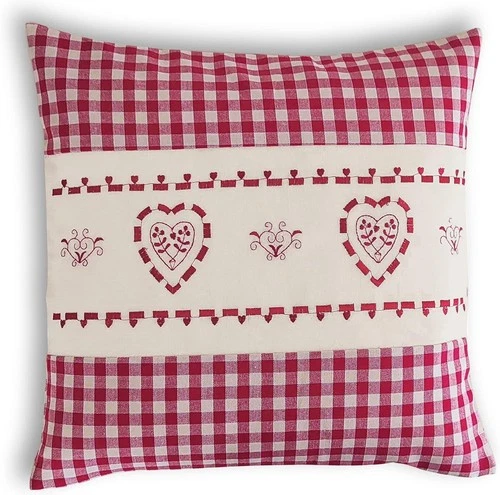 Cushion Cover 40x40cm Deer Heart Check Red Blue Green Embroidered