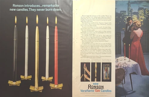 Ronson Varaflame Gas Candles Butane Woodbridge NJ Elegant Vintage Print Ad 1962