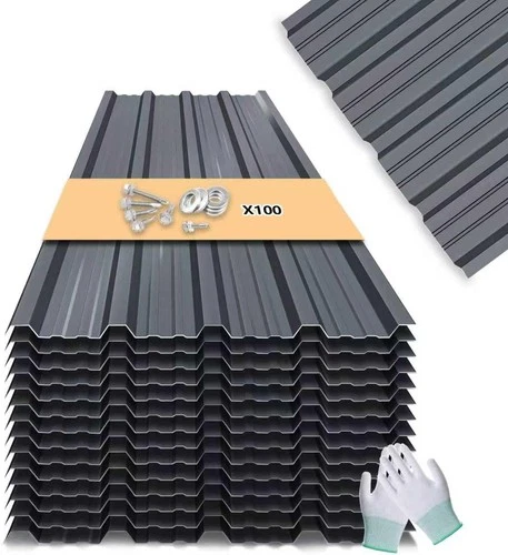 10 Pcs Metal Roofing Panels Waterproof Corrugated Siding Grey 42"