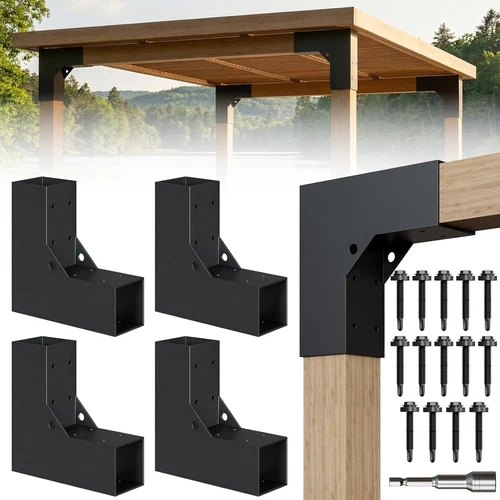 4 Pcs Pergola DIY Bracket Kits, 2-Way L Shaped Corner Brackets for 4" X 4"(Actua
