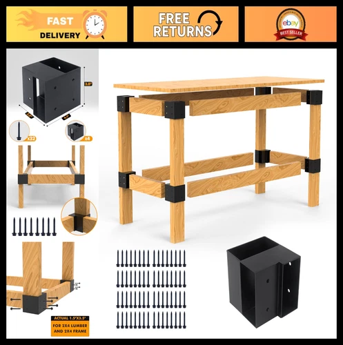 Heavy Duty Workbench Brackets Kit, 8 PCS 3-Way Right Angle Corner Braces for DIY