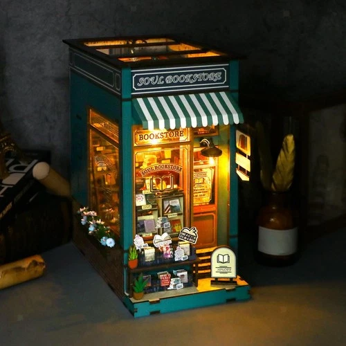 Wooden Miniature Dollhouse Kits Collectibles Birthday Gifts Bookends Model