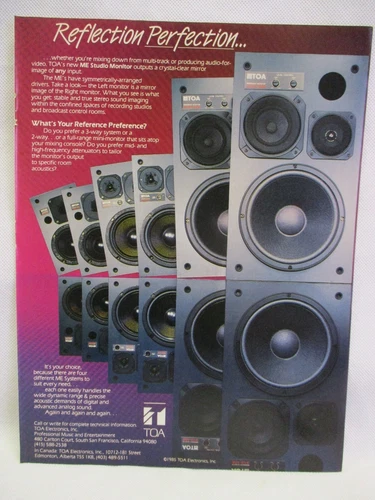 TOA ME Studio Monitor Speakers 1985 Vintage Print Ad Music Room Man Cave Full Pg