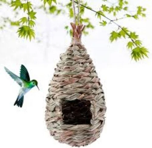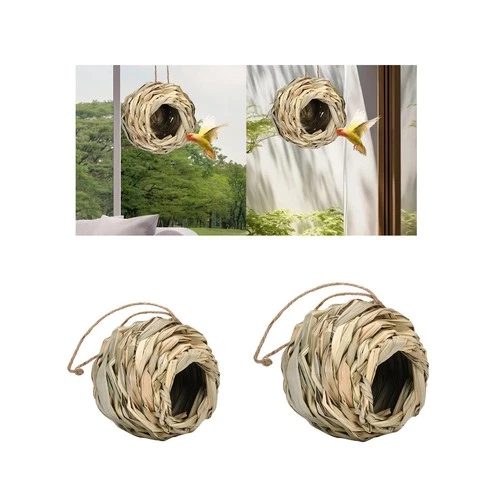 Bird House Nesting Woven Straw Nests Grass Hut Roosting Pocket
