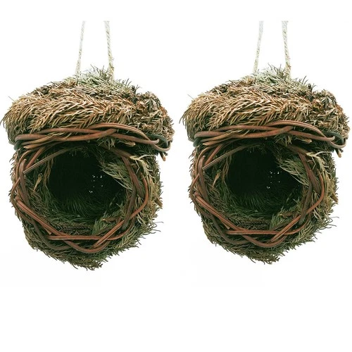 2 Pack Grass Bird House Hummingbird Nest House Roosting Pocket for Outside 5....