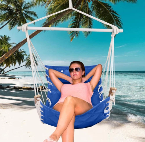 Hammock Chair with Wooden Armrest & Pillow - Garden,Patio, Deck Indoor/Outdoor