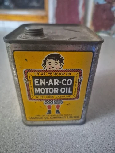 Antique Enarco White Rose Motor oil and Gasoline Tin Bank All Original