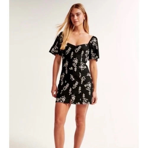 Abercrombie Fitch Black White Floral Mini Dress Square Neck Flutter Sleeve LP