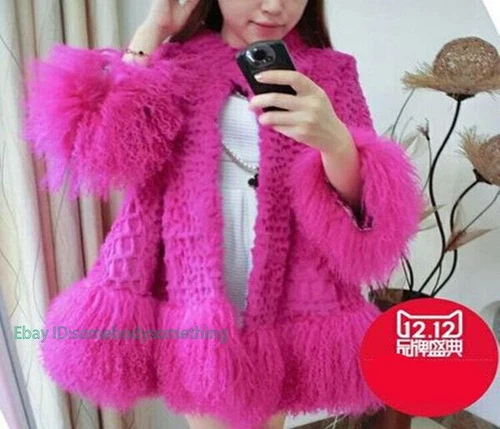 Women 100% Real Mongolia Lamb Fur Warm Coat Overcoat Skirt Hem Jacket Outwear