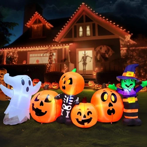 8 ft Long Halloween Inflatable Three Characters and Pumpkin Patch Outdoor Dec...