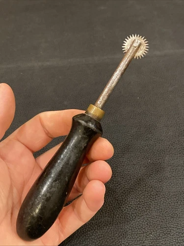 VTG Leather Fabric Pricking Wheel Tool Rotary Sewing Stitch Marker Wood Handle