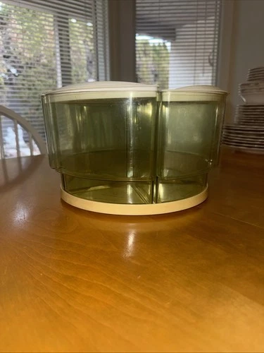 Vintage Rubbermaid Wedge Canister Green Sneak A Peek Party Tray Rotating W Lids