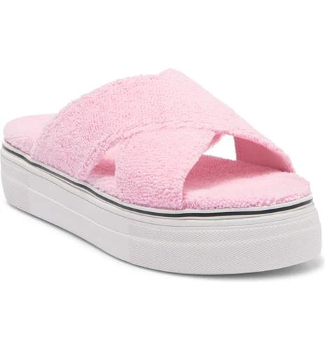 Steve Madden Rotation Flatform Sandals Slip On Platforms Pink Terry Size 8 NEW