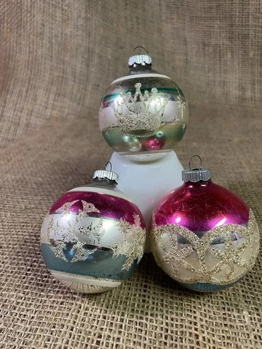 Lot of 3 SHINY BRITE Christmas Ornaments - Round Balls, MERCURY GLASS, 1950s MCM