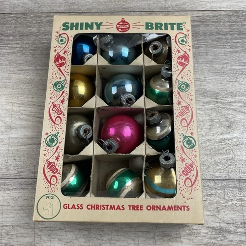 12 Vintage Shiny Brite Christmas Mercury Glass Ornaments Under 2” Each