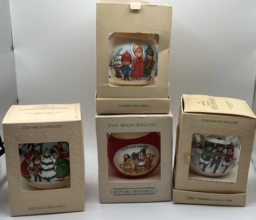 Vintage Joan Walsh Anglund Satin Christmas Ornaments Lot of 4 Ice Skating Tree