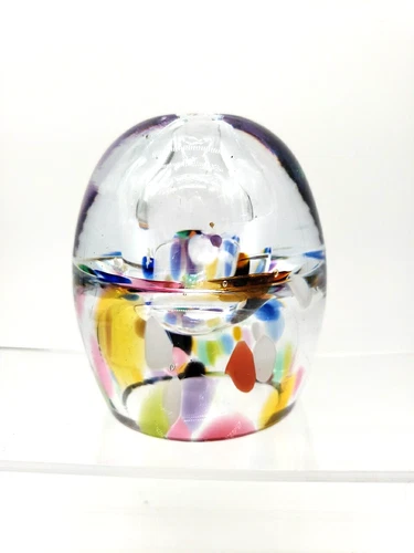 Round Hand Blown 3" Confetti Glass Oil Lamp Bud Vase Cut Flower Round Ball