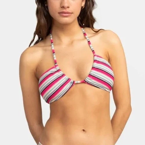 Roxy Paraiso Stripe Crochet Style Halter Neck Bandeau Bikini Top - Size S - NWT