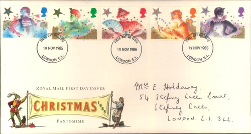 FDC FIRST DAY COVER ISSUE STAMPS UK ROYAL MAIL CHRISTMAS PANTOMINE 1985