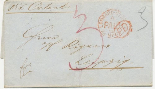 GB 1871 superb Ship Post entire with rare "LOMBARD-STREET / PAID" CDS in red