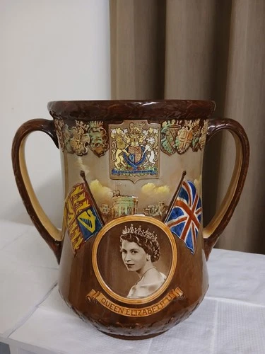 Rare Large Royal Doulton Queen Elizabeth Coronation Loving Cup