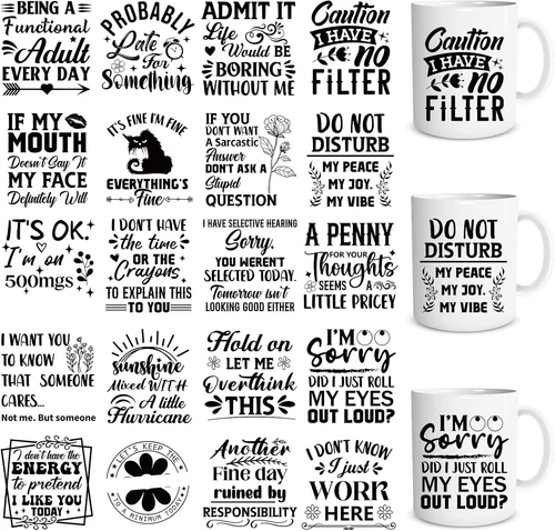 Sarcastic Rub on Transfers for Crafts - 20 Sheets Funny UV DTF Cup Wraps, Black