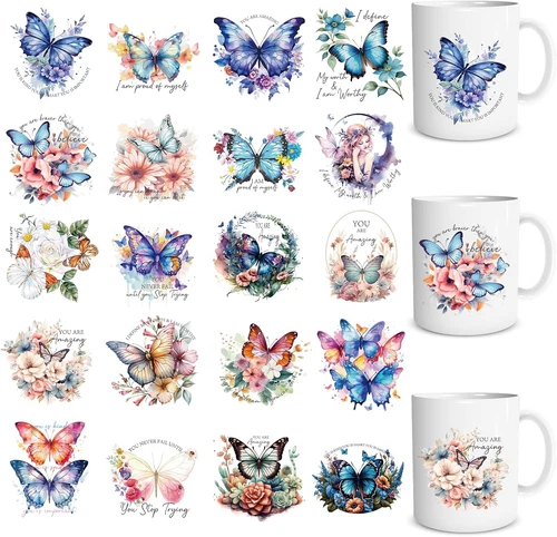 Butterfly Rub on Transfers for Crafts - 20 Sheets Flower UV DTF Cup Wraps, Inspi