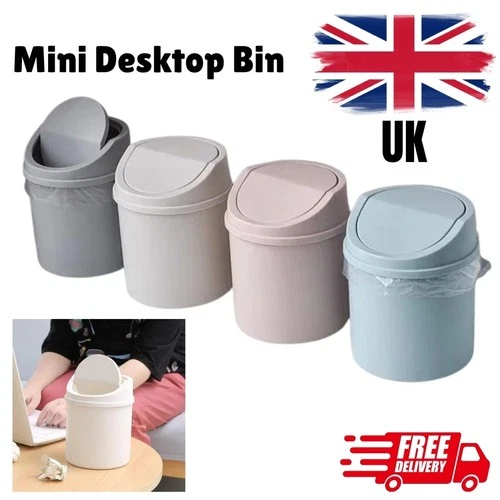 Mini Desktop Bin Small Trash Can with Lid Desk Table Waste Bin Home UK