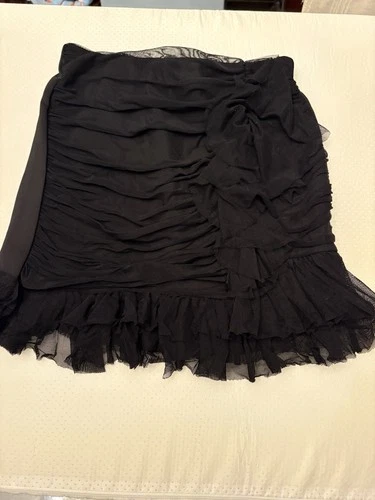 Forever 21 Black Ruffle Ruched Chiffon Mini Skirt Elastic Waist Size S