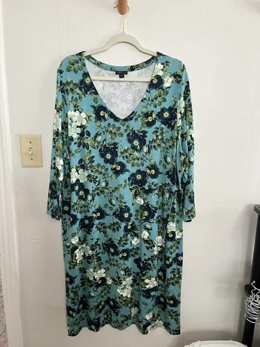 J. Jill Wearever Blue Floral 3/4 Sleeve Soft Jersey Knit Shift XL Lightweight