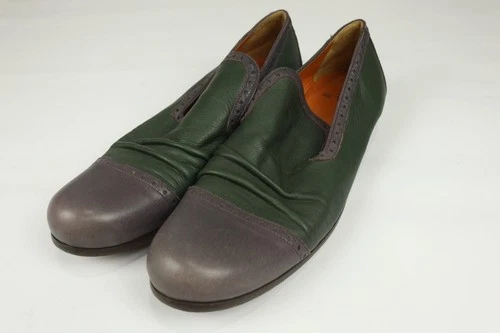 Etro Green Purple Two Tone Leather Ruched Brogue Slip On Loafer Shoes Size EU 43