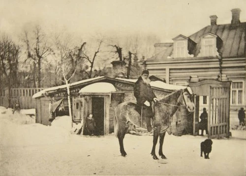 Russian author Leo Tolstoy on horseback Moscow Russia 1900s Old Photo