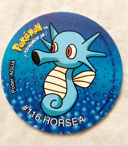 SABRITAS POKEMON Gen. 1 HORSEA #116 Tazos 1998 Nintendo Mexico Cup Taps Pog NM+