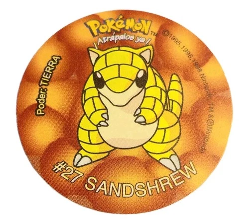 SABRITAS POKEMON SANDSHREW #27 Tazos 1998 NINTENDO Mexico Pog Cup Taps NM+