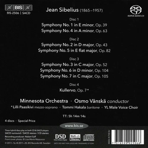 SIBELIUS / MINNESOTA ORCH / VANSKA - SEVEN SYMPHONIES (4 SACD) NEW CD
