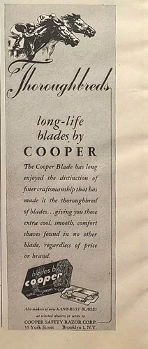 Cooper Safety Razor Blades Brooklyn NY Thoroughbreds Vintage Print Ad 1944