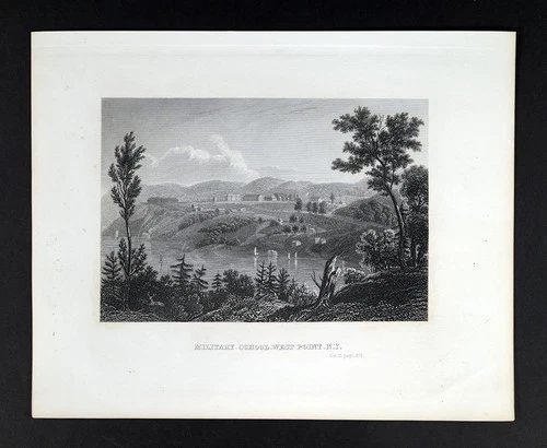 1856 Walker Print West Point Military School Academy NY Hudson River Sailboats