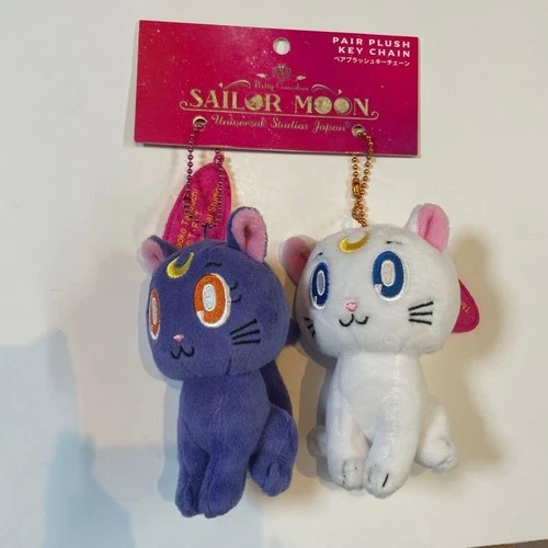 USJ Sailor Moon Luna & Artemis Plush Keychain, White & Purple,
