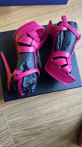 YSL Yves Saint Laurent Tribute Heel Sandals Pink Size 38