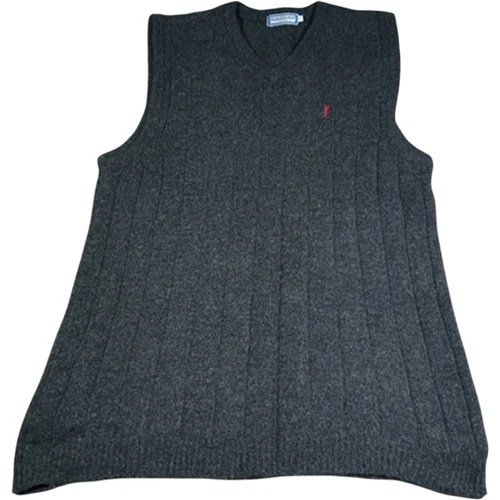 Yves Saint Laurent Men's Vest Size L Dark Grey Wool Sleeveless Logo